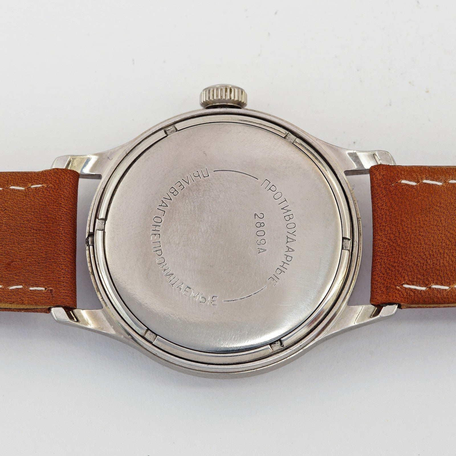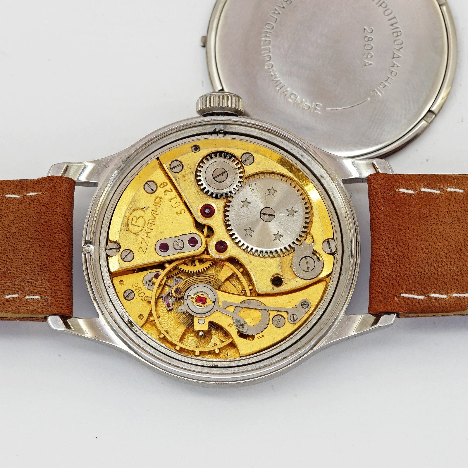 Watches sold to the military were marked "ЗАКАЗ МО СССР," meaning "Ordered by the Ministry of Defence of the USSR." These models were sold exclusively through Voentorg stores, which catered to military personnel with identification only. (Today, these models have become sought-after collectibles.)