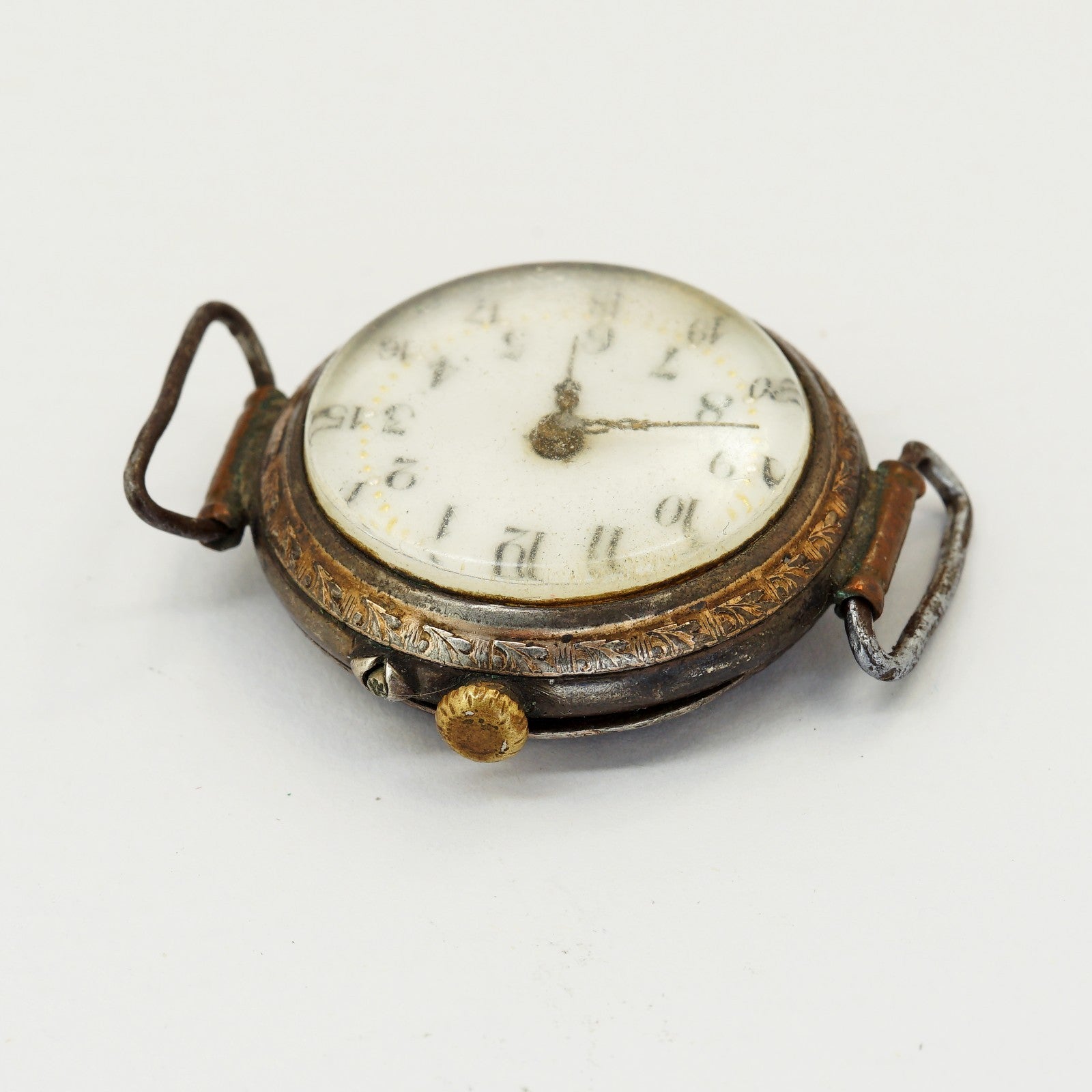 Up for sale is a fascinating piece of history: an antique "Trench Watch" conversion. Originally a silver pocket watch from the early 20th century, it was modified in the 1920s with soldered wire lugs to be worn on the wrist—a common practice during the transition from pocket to wristwatches.