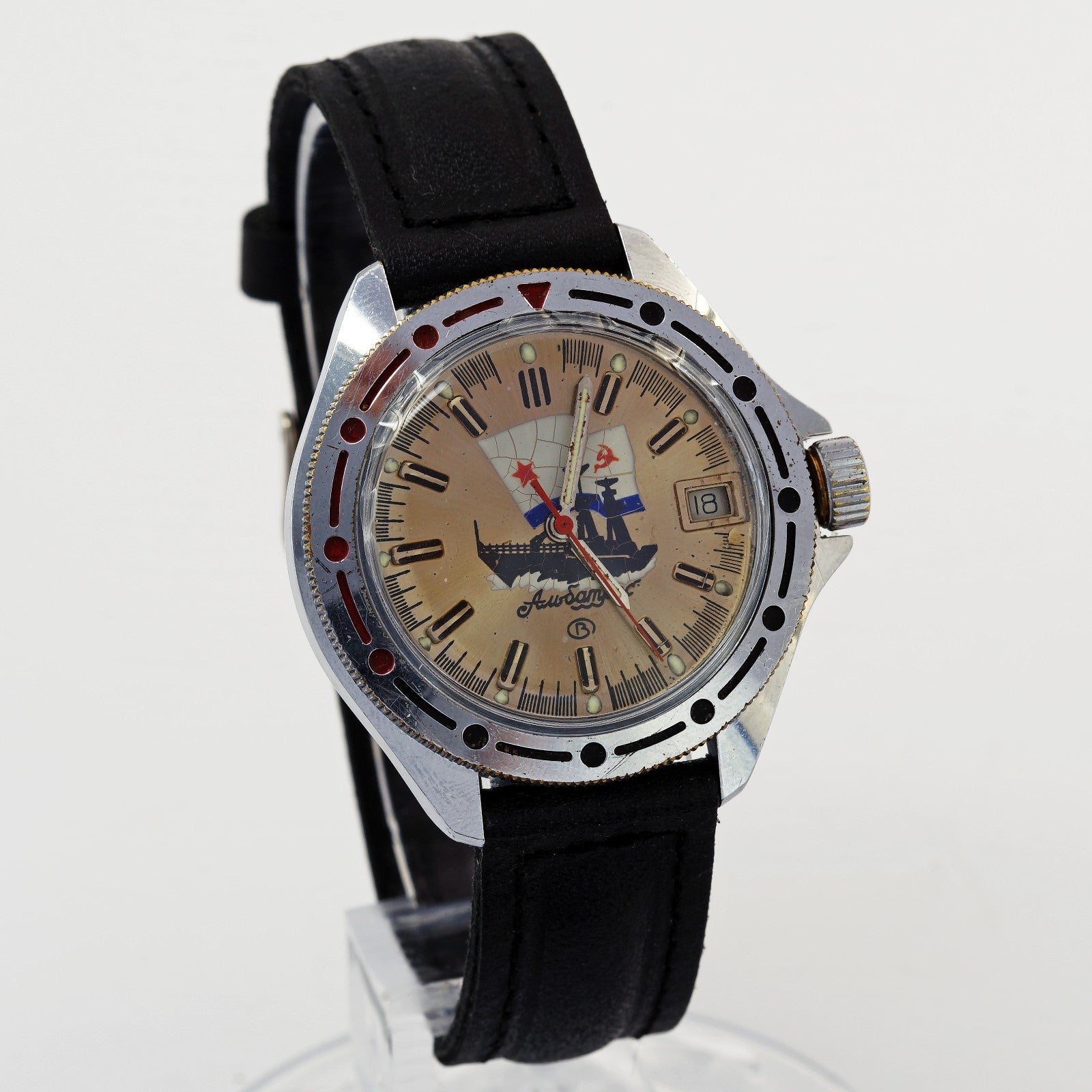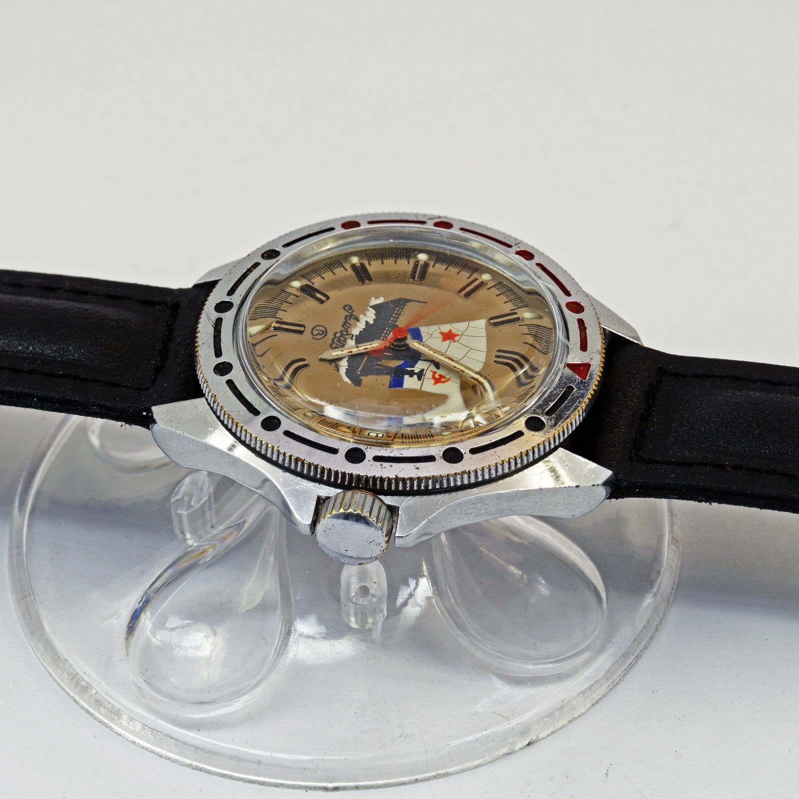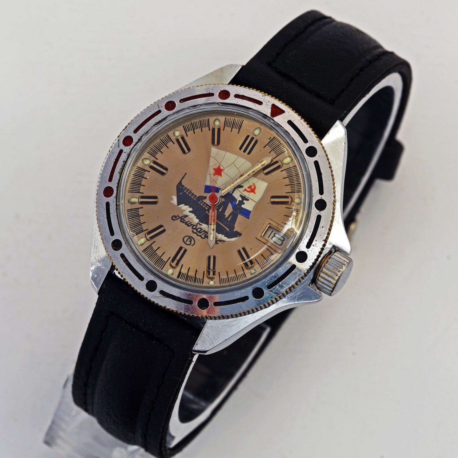 In the Soviet clock industry an Amfibia watch was what the west would call a "Diver" watch. Produced in great quantities for the Soviet and Russian military, these watches gained great popularity worldwide. The Vostok Amphibia or Raketa Amphibia are Russian diving watch created respectively in 1967 and 1968 for the USSR's navy.