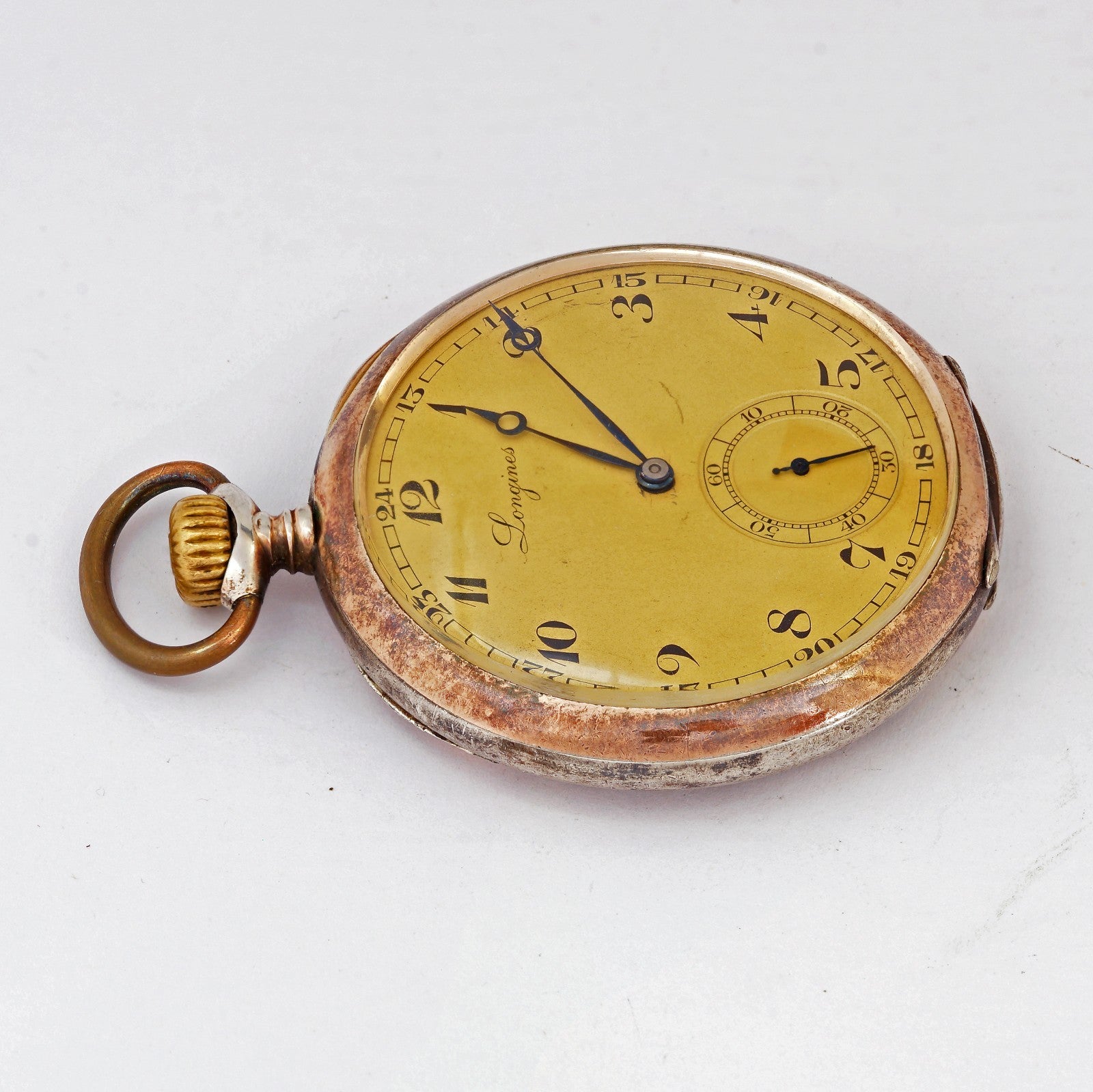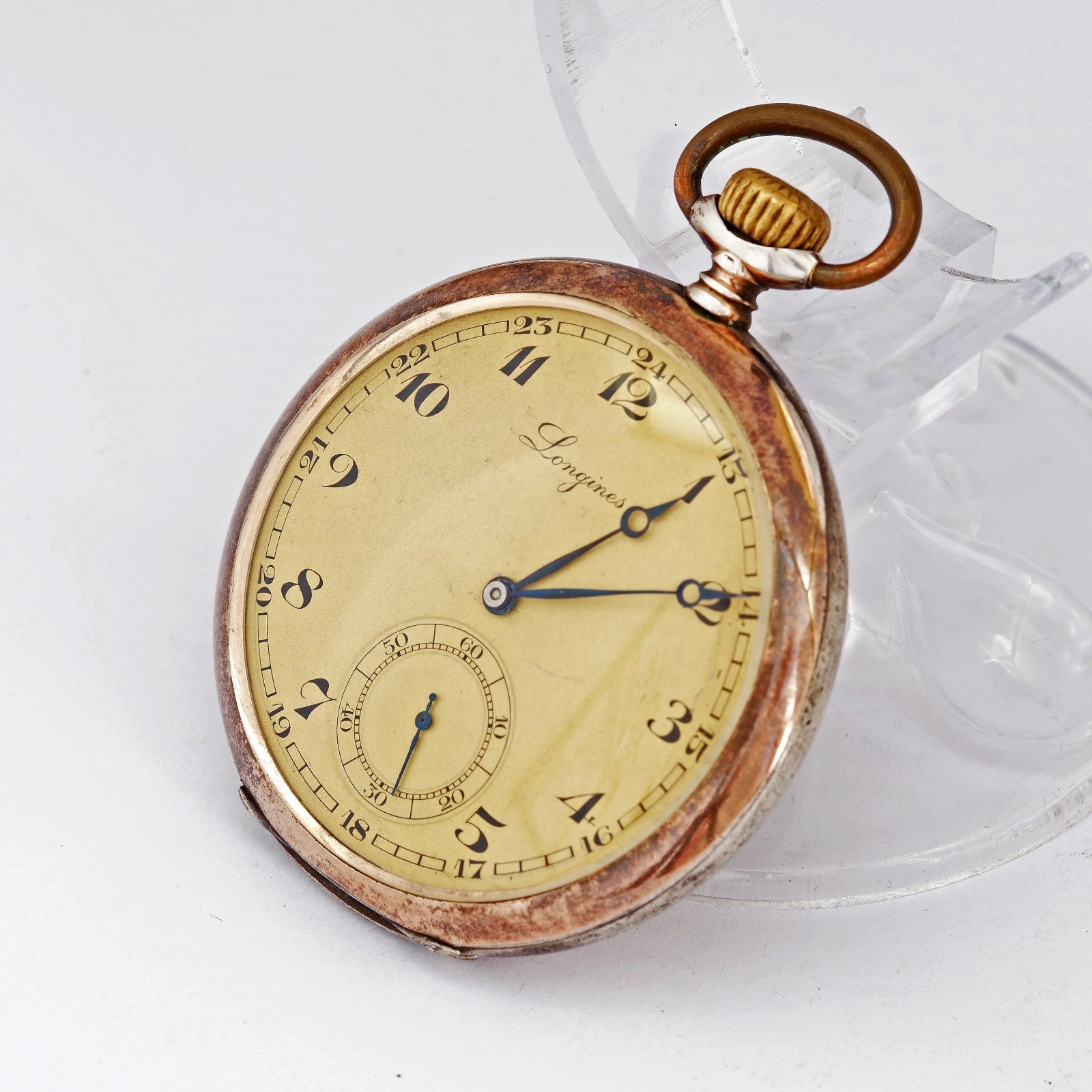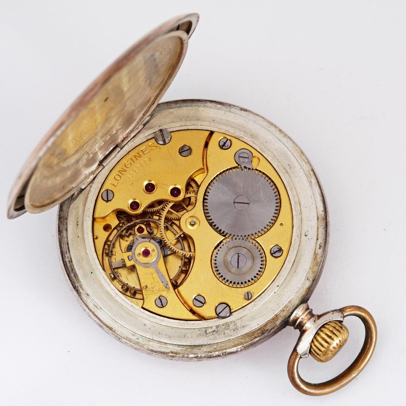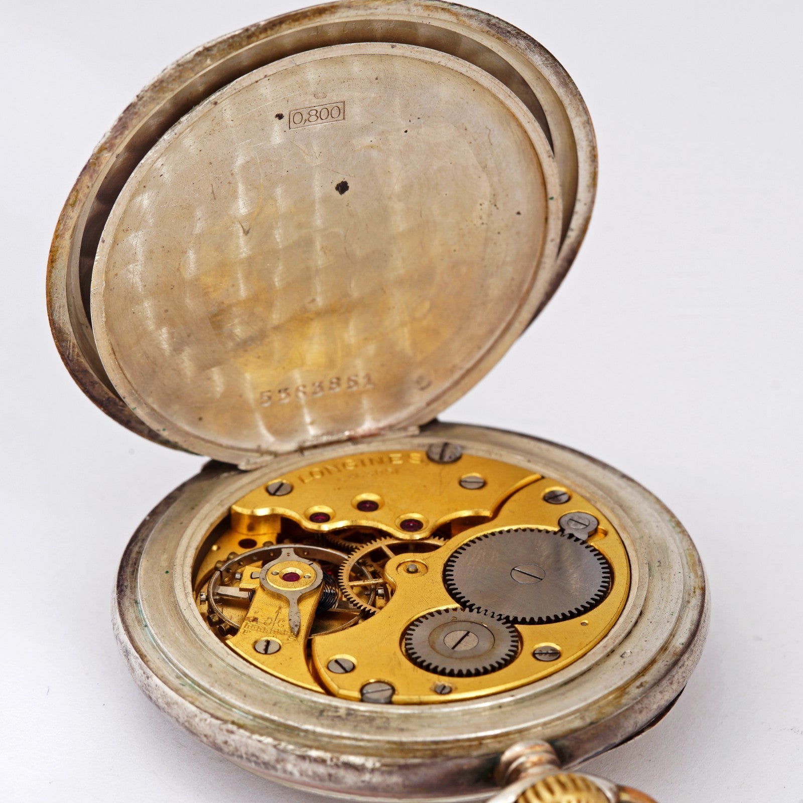 1930's Unique vintage Longines mechanical solid silver 0.800 pocket watch. 10 Grands prix medals. Nice patina!