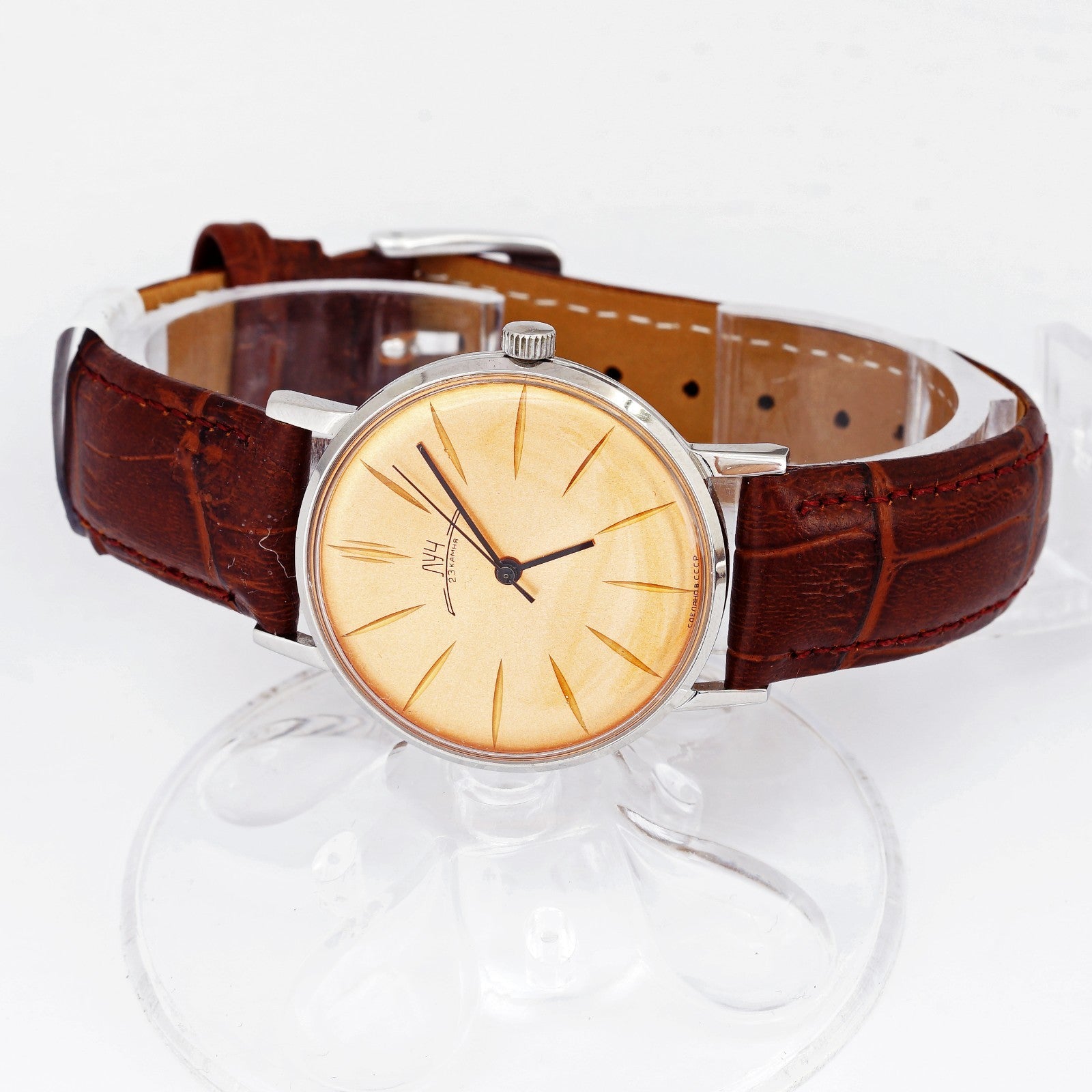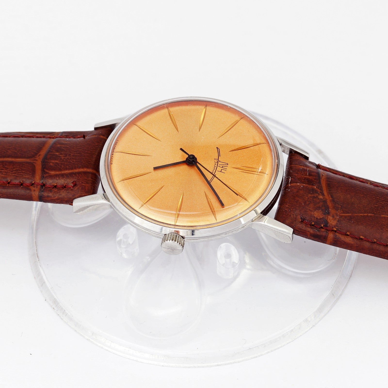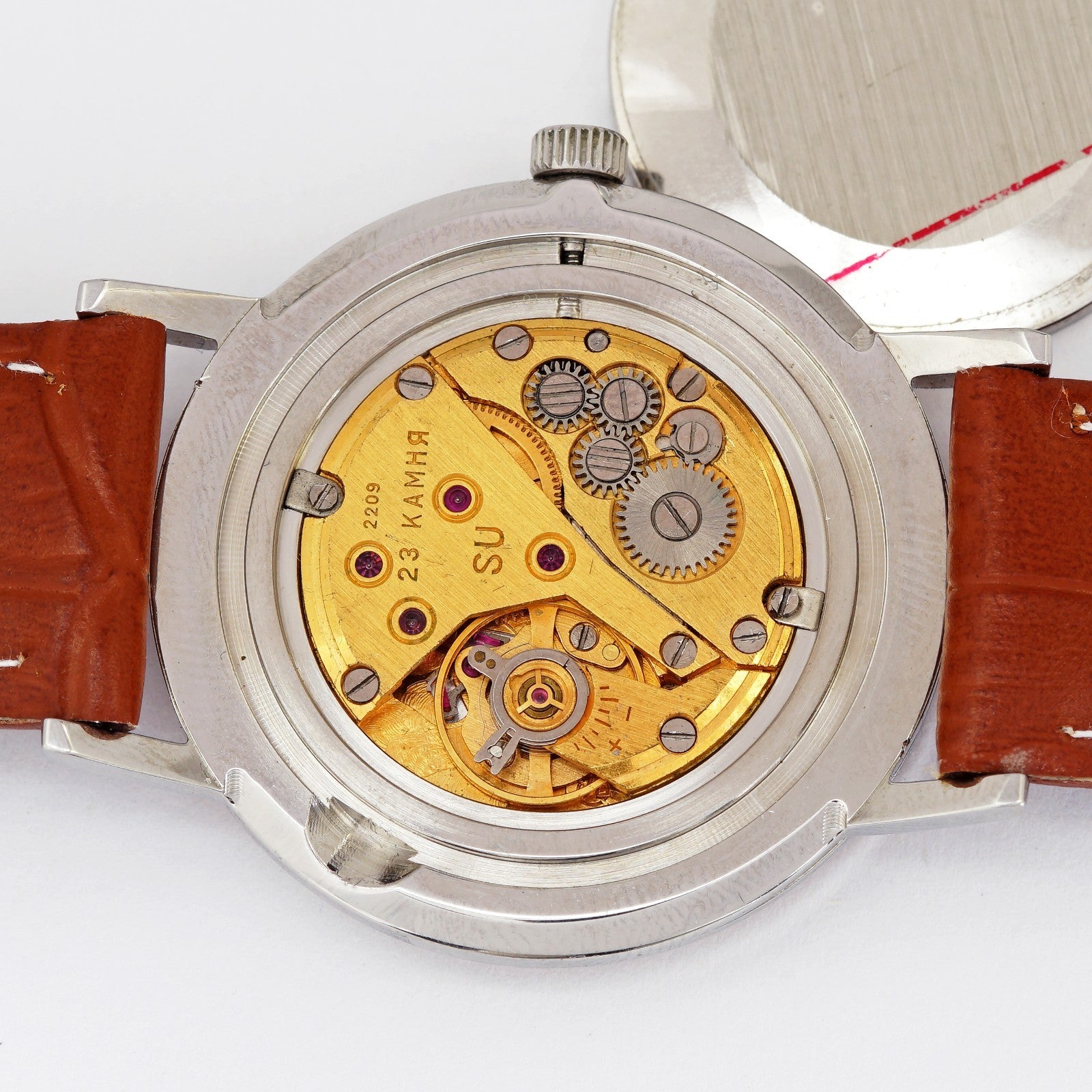 Excellent, new condition!!! The case and dial are NEW! (this means that this details dial has been replaced. It is made nowadays). Please see the photos for the assessment of watches. Runs well and keeps time accurately. Really watches look much better than in the photo. New PU leather strap as a gift!