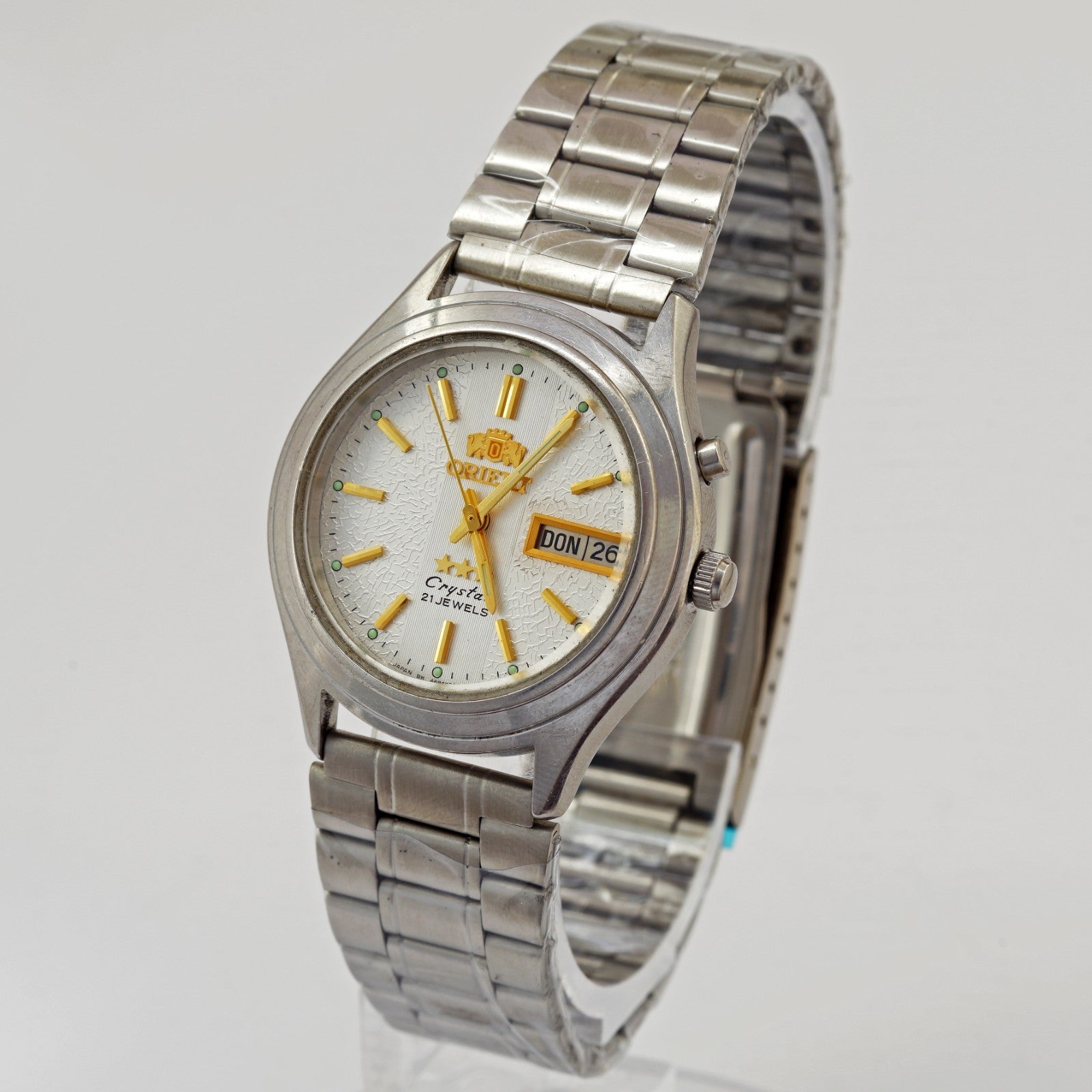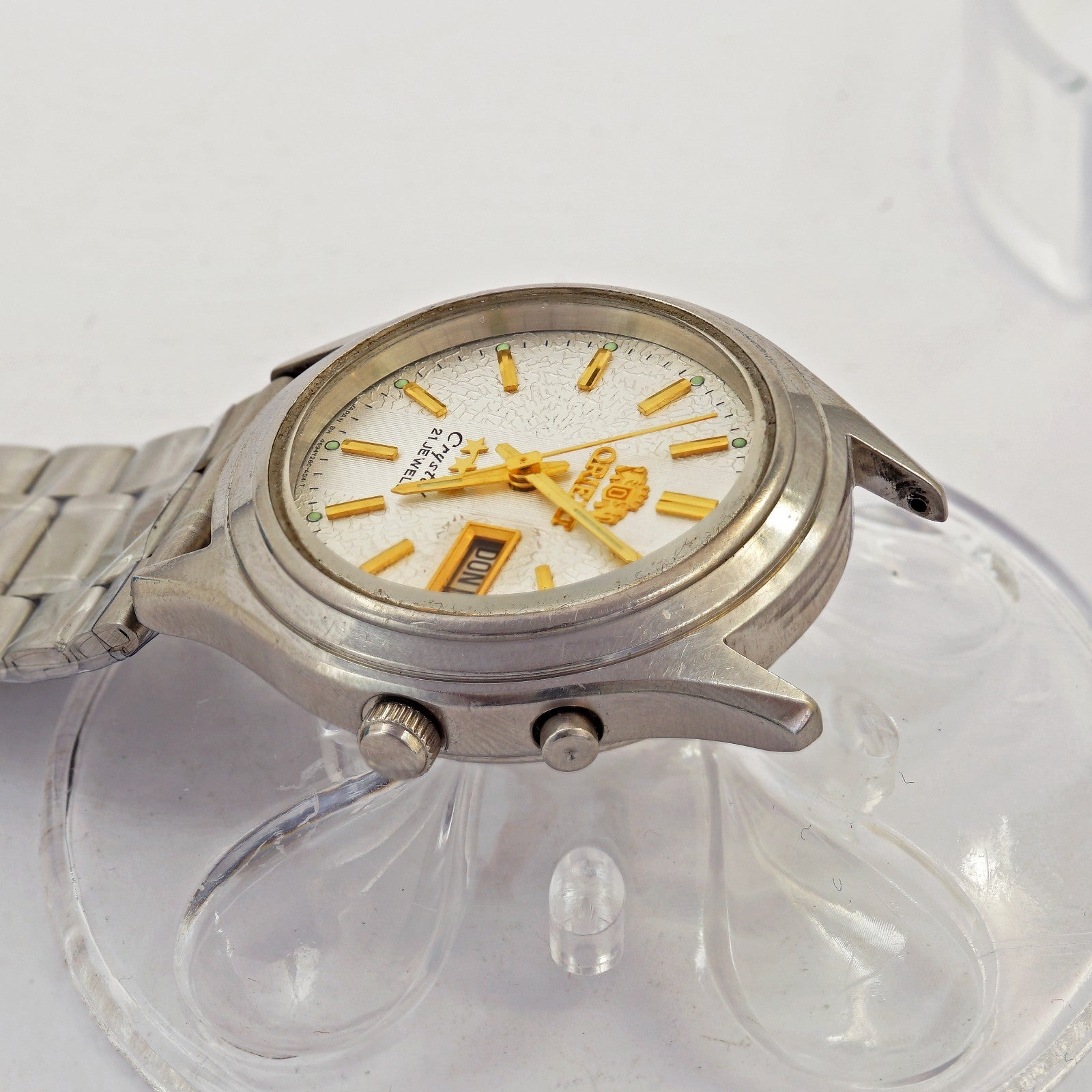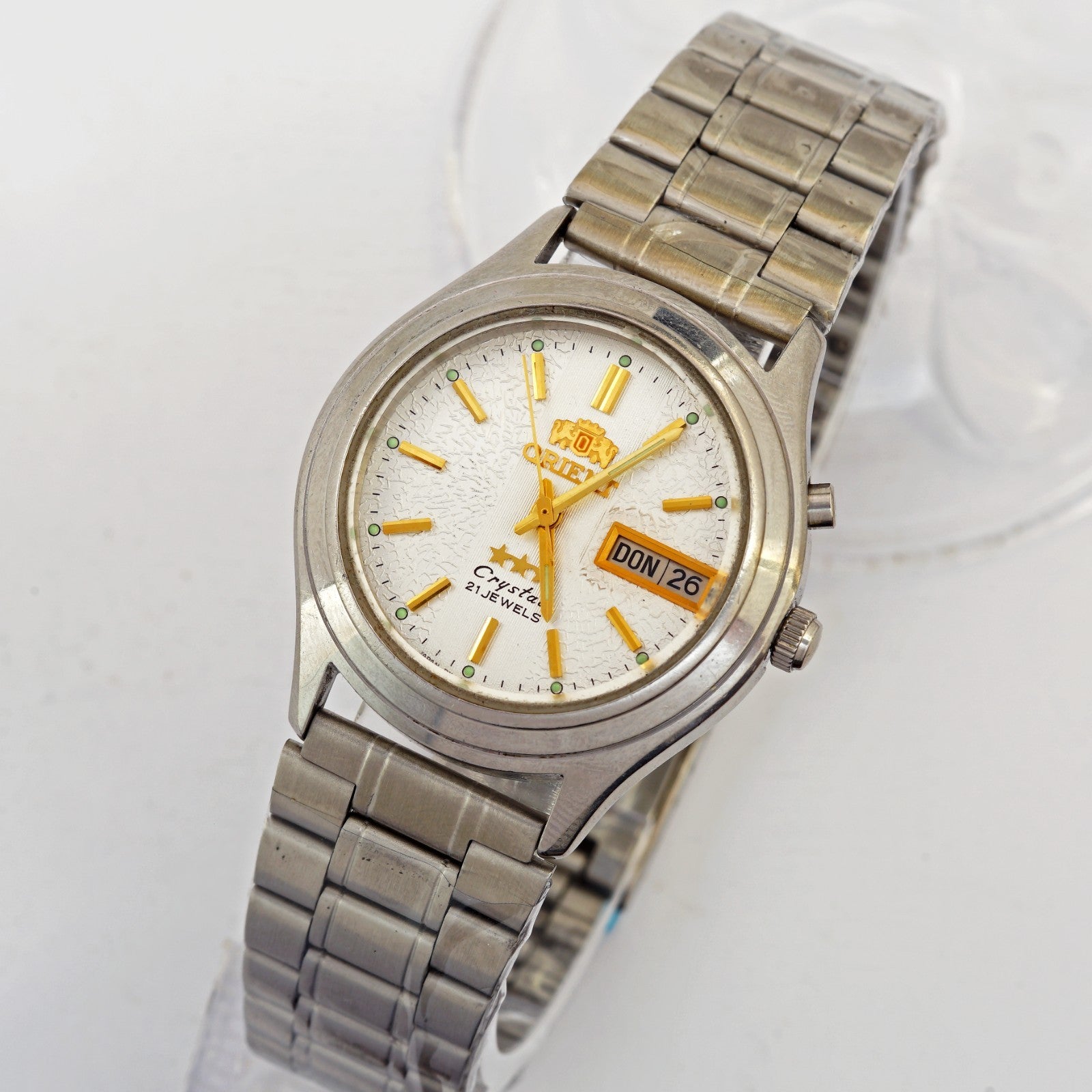 Inscriptions on the dial: Orient, 3 stars, crystal, 21 jewels