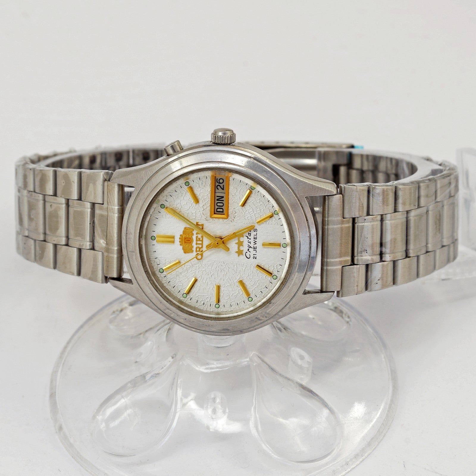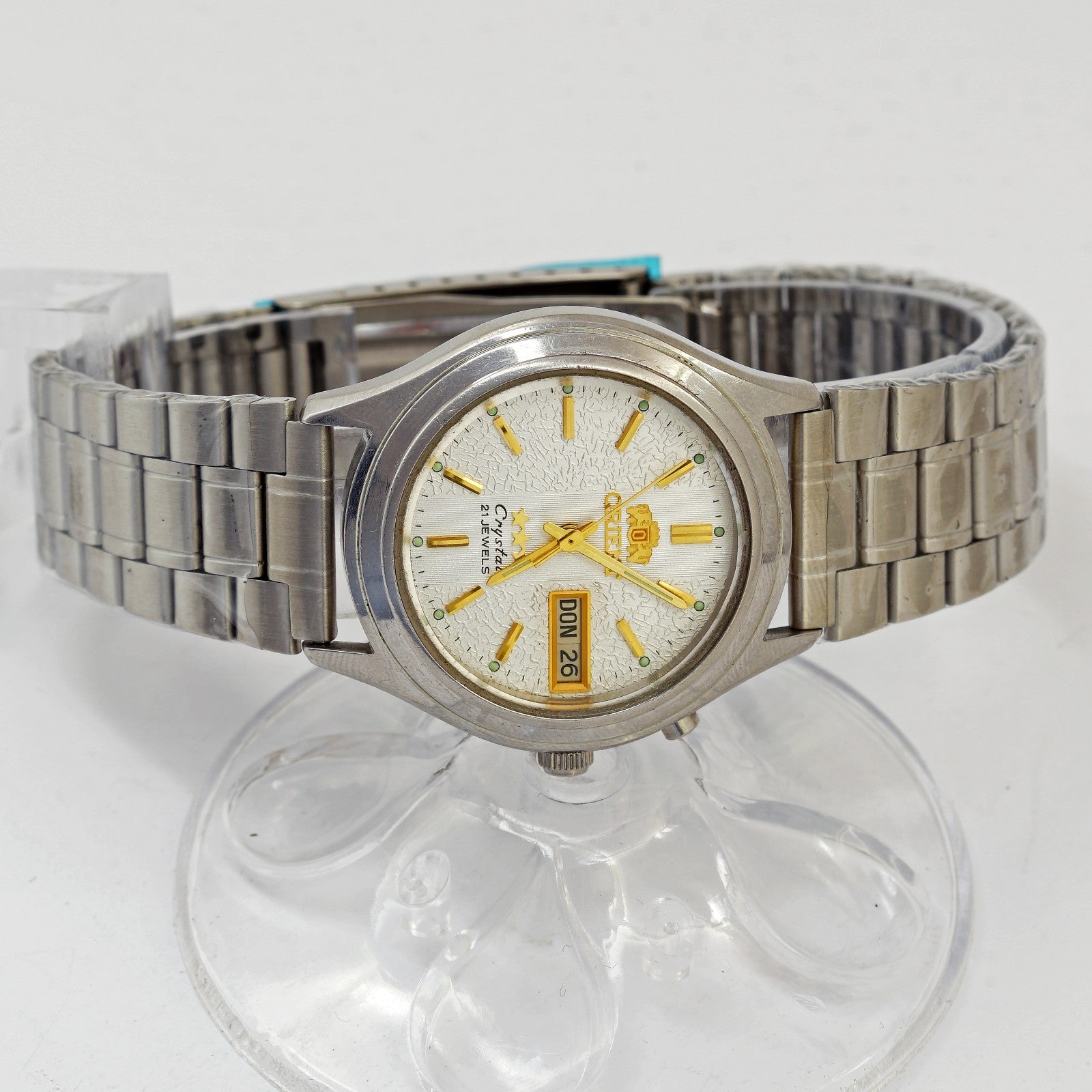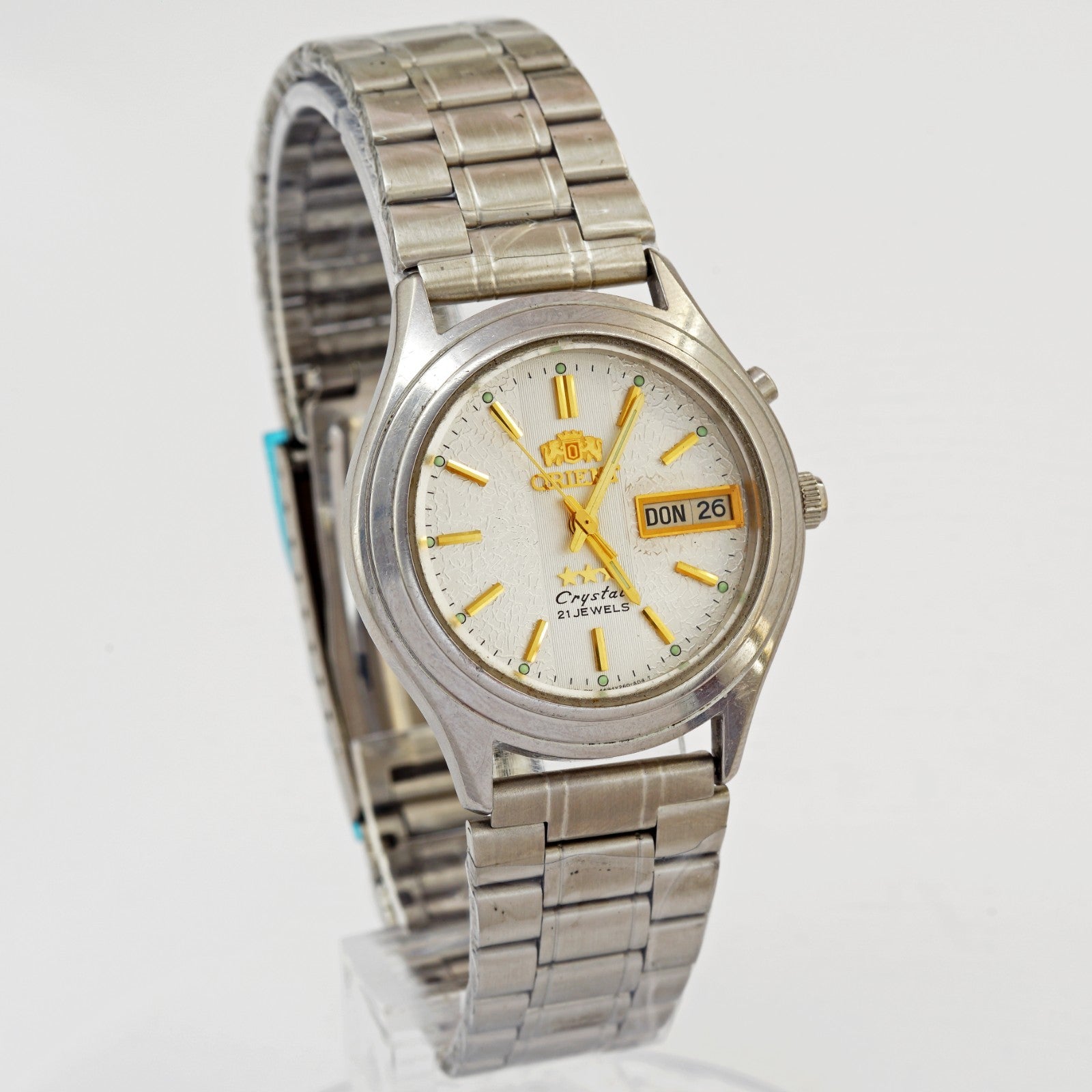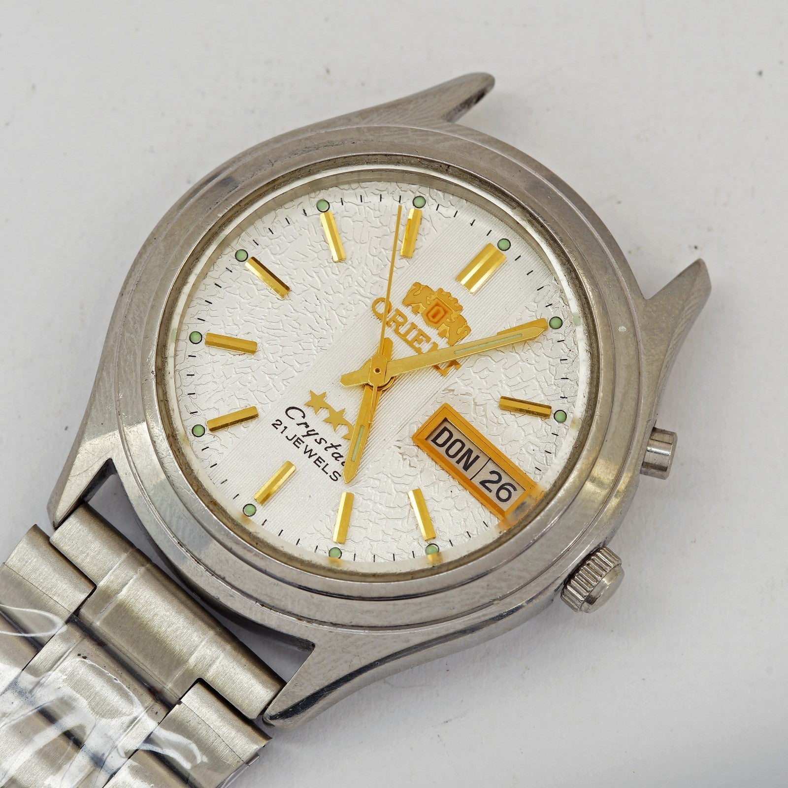 Inscriptions on the dial: Orient, 3 stars, crystal, 21 jewels