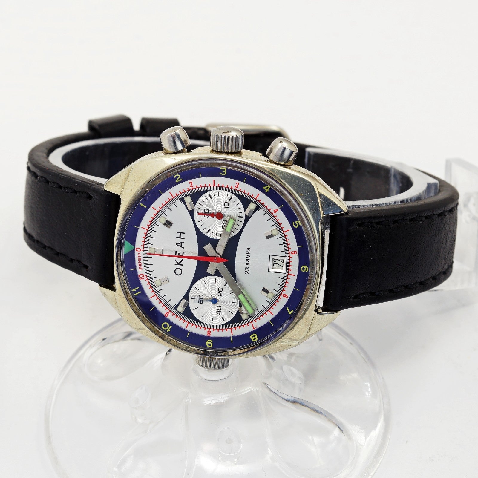 Overall, the Ocean Chronograph Military Soviet wristwatch is not only a testament to the craftsmanship of Soviet watchmakers but also a symbol of reliability and functionality in the face of challenging circumstances.